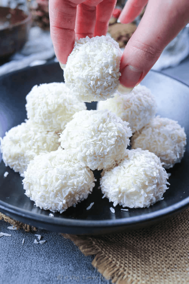 Easy to whip up dessert starring only 3 ingredients, straight from my childhood memories. These coconut balls are blended with silken tofu and sugar for a mouthful of pleasure!