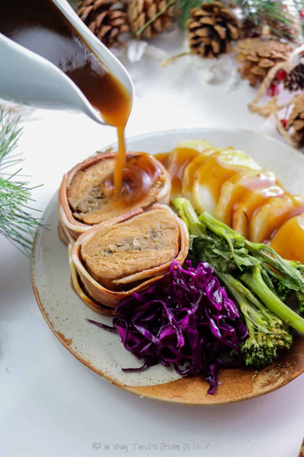This Bacon Wrapped Vegan Soy Roast is THE centrepiece you can bring on the table this Holiday season. It’s the perfect meatless alternative that won’t make you miss the real thing.