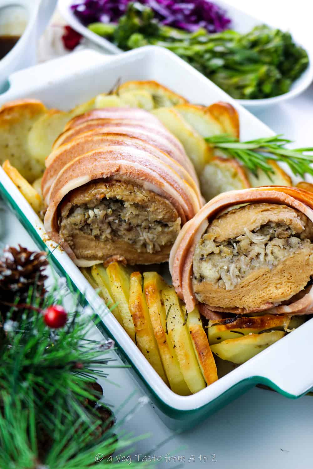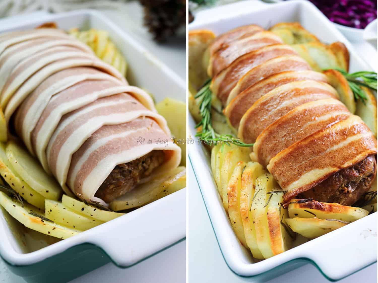 How to make this Bacon Wrapped Vegan Stuffed Soy Roast
