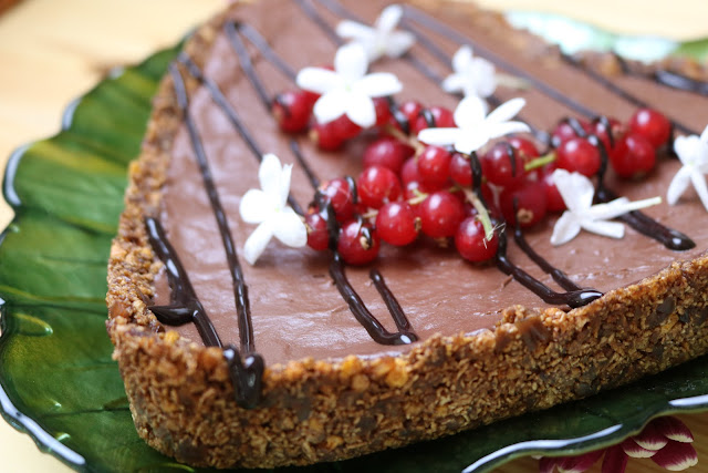 No-Bake Five Cereals Chocolate tart with Jasmine and Orange infused Custard.