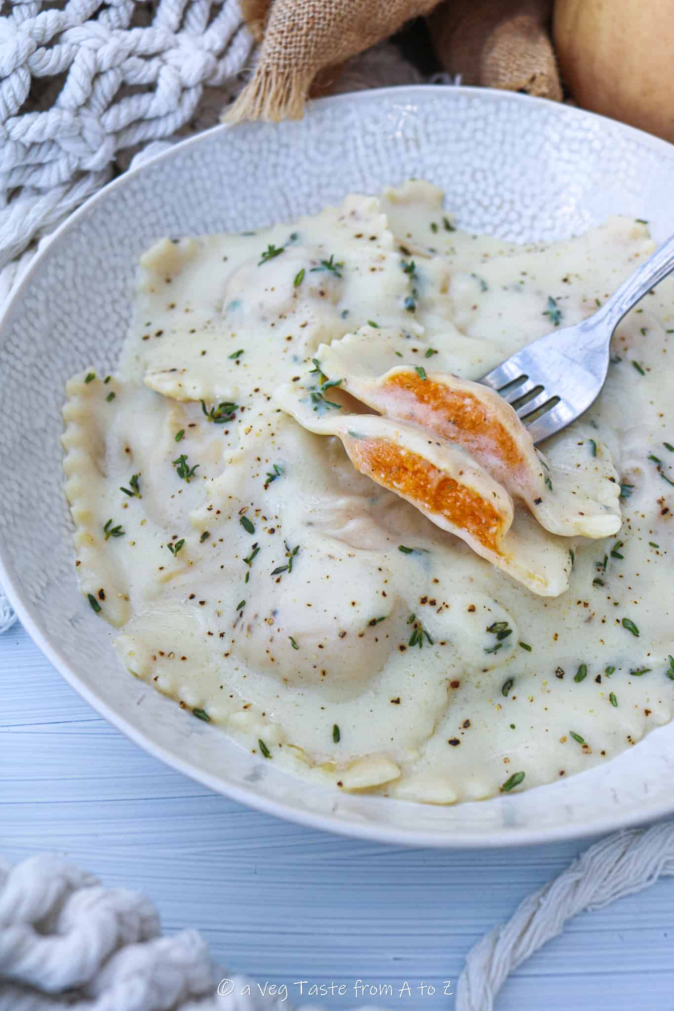 Butternut Squash Ravioli with Thyme Infused White Sauce Recipe