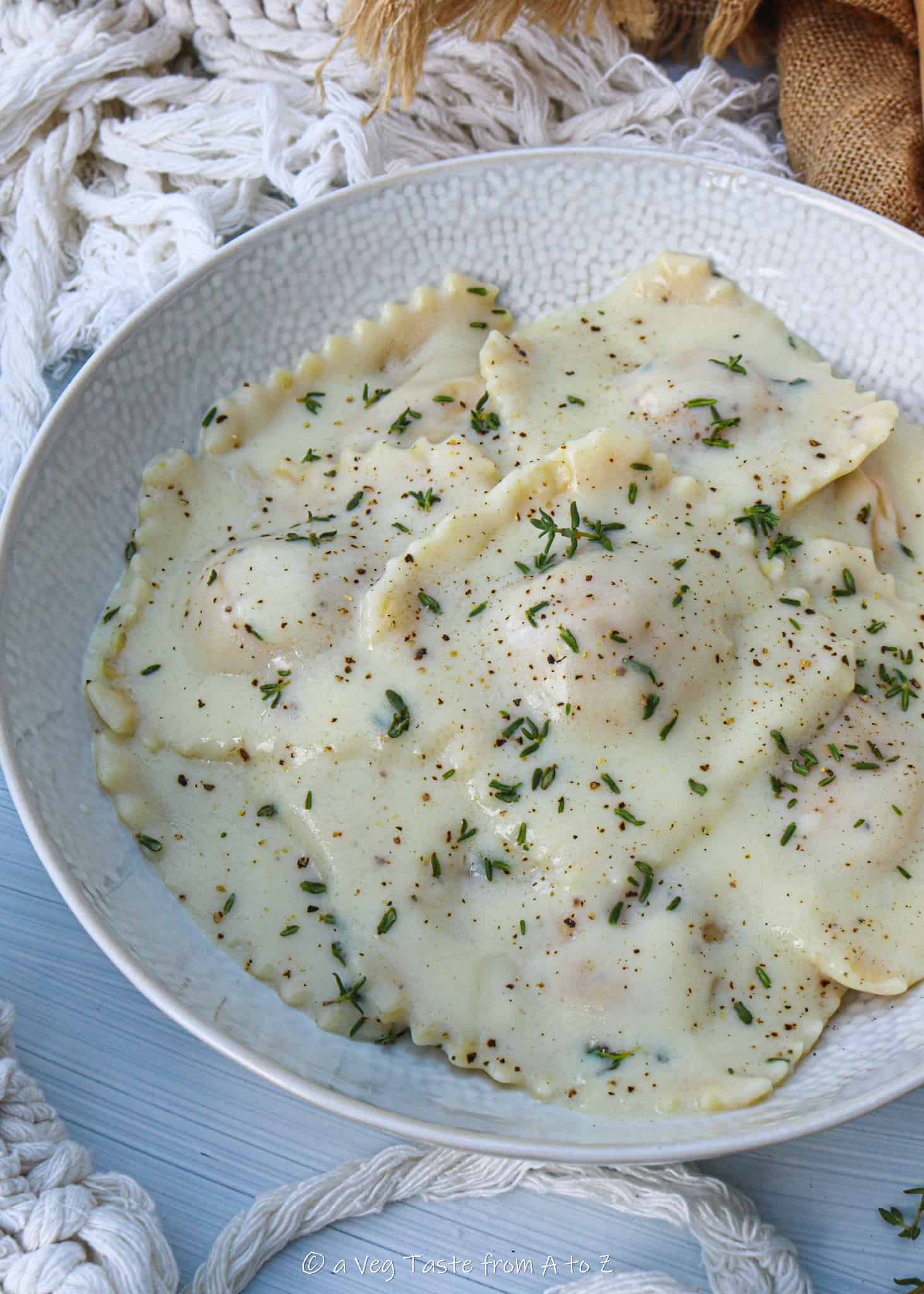 Butternut Squash Ravioli with Thyme Infused White Sauce Recipe