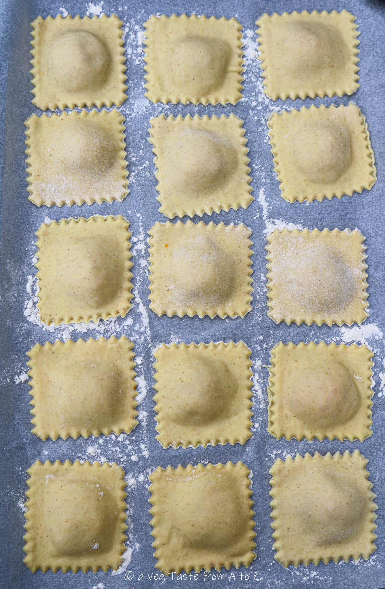 6. Place the ravioli onto a floured surface to prevent them to stick to the bottom. Do not overlap.