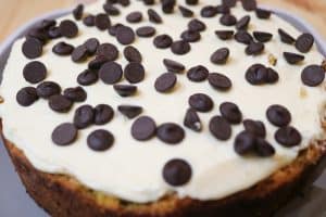 12. Scoop over ⅓ of the frosting then sprinkle the chocolate chips.