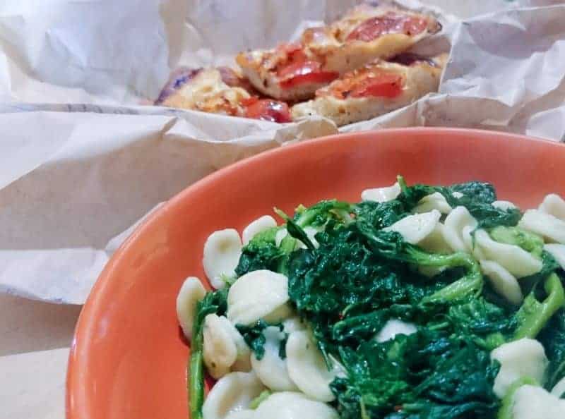 Many of its typical dishes are also vegan friendly like: fave e cicorie (fava bean pure and chicory), Calzone di Cipolla (onion filled calzone, though some bakeries may put cheese in it, it's always best to ask first), sgagliozze (fried polenta), popizze or pettole (deep fried pizza dough), lampascioni alla barese (a perennial bulbous plant that resembles an onion with a very bitter taste. It's typically boiled and served with olive oil, salt and pepper. They are also amazing battered and deep fried.), pasta e cavoli (pasta with cabbage) and Orecchiette con Cime di Rapa (pasta with turnip greens - which is typically dressed with olive oil, garlic and anchovies, but can easily be veganized by omitting the fish and/or use capers instead).