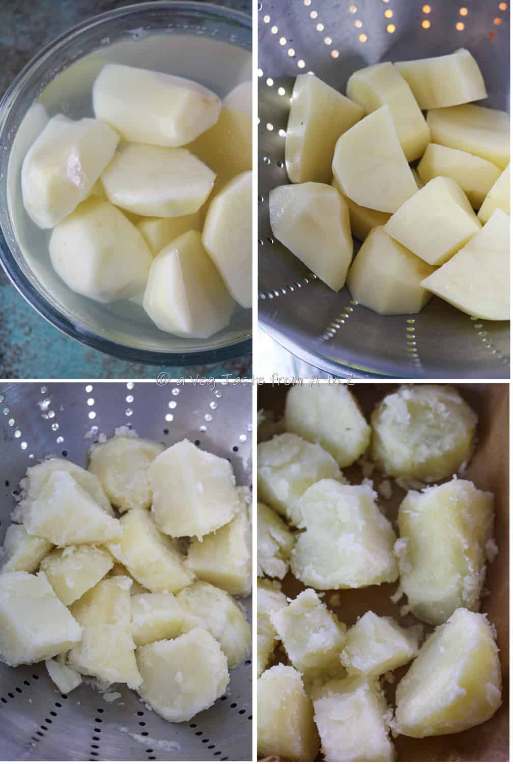 Most people might boil them, but I find that steaming the potato chunks up to 10 minutes works as a real treat.