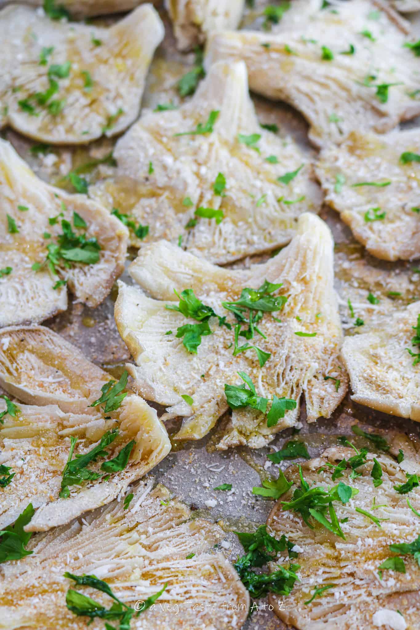 4. Season with salt and pepper, then equally distribute the minced garlic, breadcrumbs and, lastly, the grated vegan cheese.