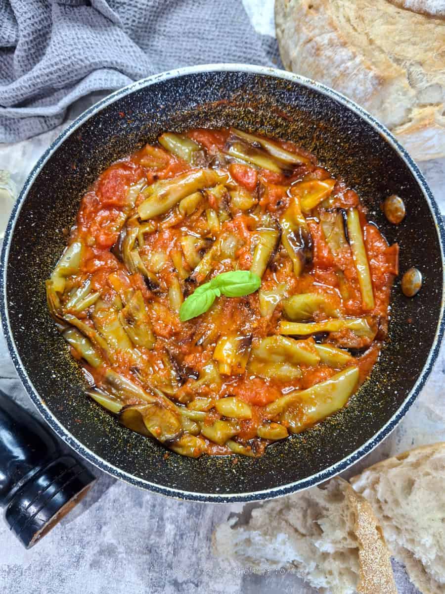 Discover the comforting flavours of Grandma’s green pepper peperonata – a simple, healthy side dish made with roasted green peppers, garlic, and tomato sauce. Perfect served warm or cold.