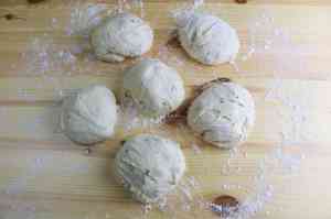 Once the dough has risen, dust the table or surface you'll be working on with a generous amount of flour and divide it into 6 balls.