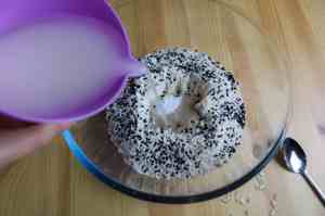 Start making the dough of these homemade plain naans simply adding the vinegar to the oat milk, whisk well and set aside.