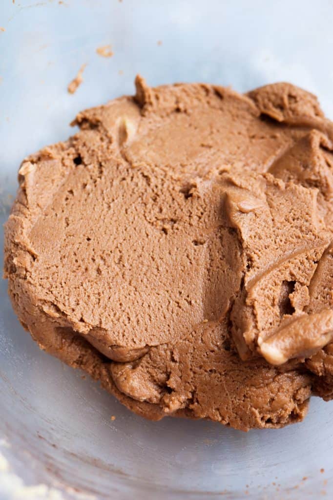 Setacciamo quindi il cacao in metà dell'impasto e montiamo fino ad ottenere un composto dal colore omogeneo. Il quantitativo di cacao indicato in questa ricetta dovrebbe venire assorbito senza alcun problema dall'impasto; nel caso in cui vi sembra che l'impasto al cacao sia troppo secco*, aggiungete qualche goccia di latte vegetale per renderlo più umido (fate attenzione a non eccedere col latte in quanto potreste compromettere o addirittura rovinare la riuscita dei biscotti!).