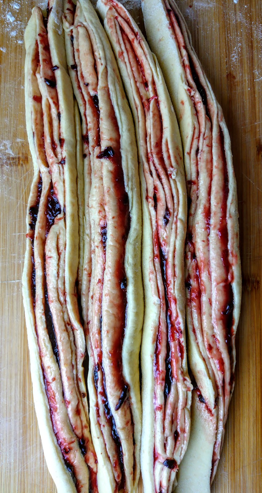 Ma stavolta non volevo creare la solita torta, magari a base di pan di Spagna e compagnia bella. Avevo il desiderio di lavorare con della pasta lievitata, ed ecco come ho deciso di cimentarmi in questo pan brioche dolce ripieno di marmellata. Tagliato per lungo e dandogli la forma di una treccia per un effetto ancora più invitante!