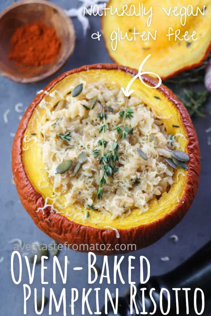 This easy oven-baked pumpkin risotto takes all the labor out of making risotto - no more standing over the stove and laboring for hours! Instead, the rice cooks itself in the oven.
