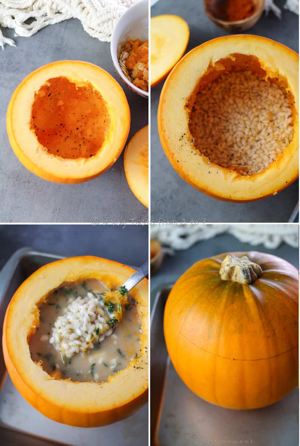7. Fill the pumpkin with the rice, then pour over the enriched broth.
