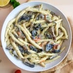 5. Cook the pasta, coat it in the vegan cauliflower alfredo sauce and enjoy with some freshly chopped parsley on top!