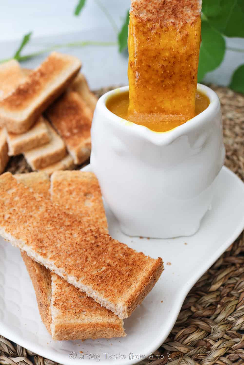 This vegan version of eggs and soldiers I am sure will bring back fond memories of your childhood. Delicious oozy runny yolk that is a perfect plant based treat for children and adults alike.