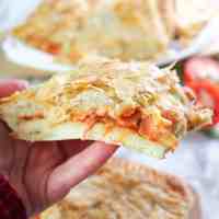 Easy to make and my husband loved it! I made the pizza crust and used store bought flaky pastry. Served with a mixed green salad. This would be great for feeding a crowd too! I definitely will be making it again. Thank you for sharing!