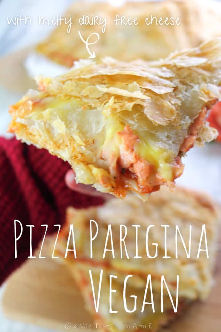 Golden, flaky and rustic Vegan Parigina Pizza will leave your mouth watering from its crispy bite, tangy tomato, savory ham & stringy cheese.