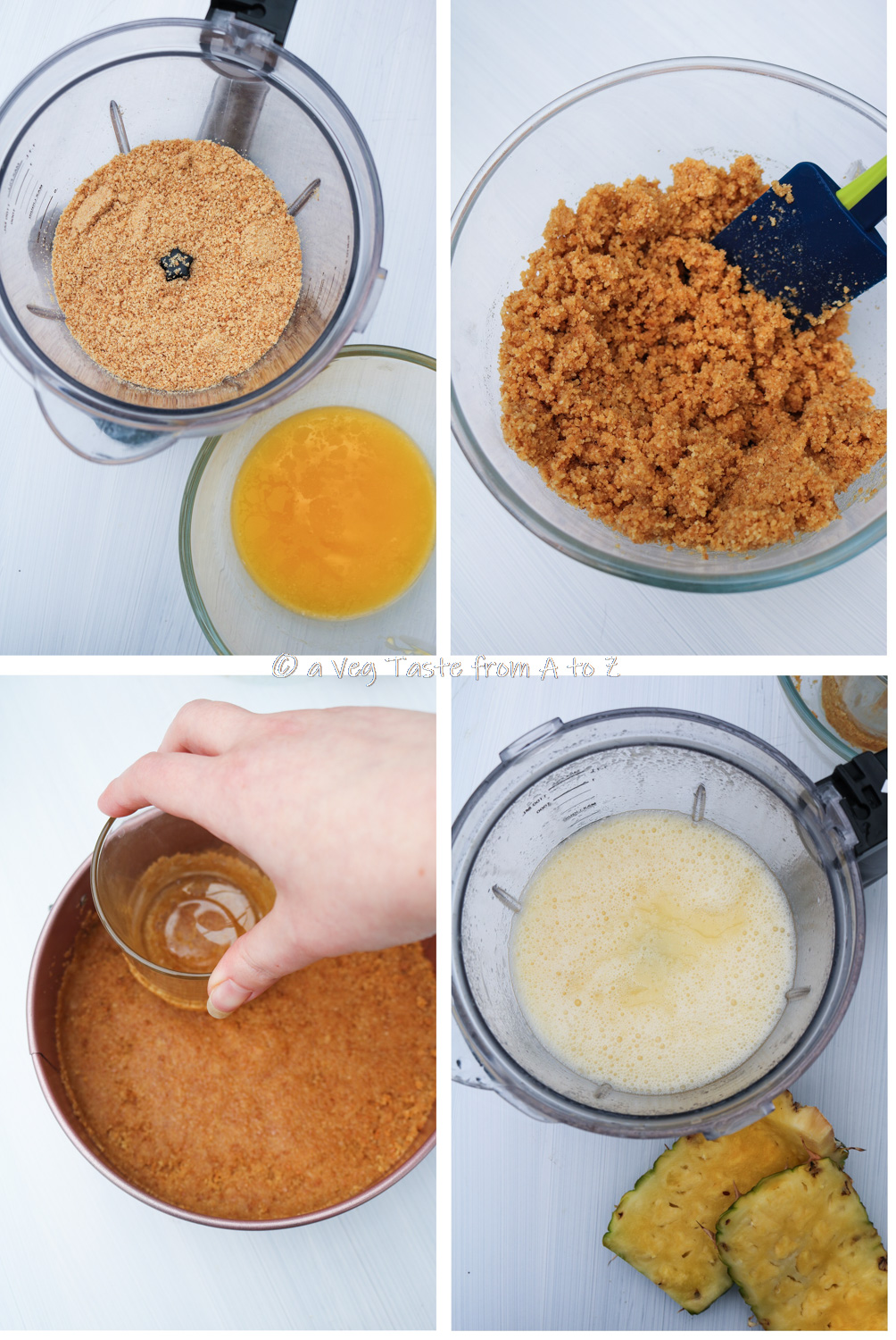 6. Line a sheet of parchment paper on the bottom of a 20cm (8inch) round hinged mold, pour the biscuit mixture and pat flat with the help of the base of a glass. Place in the freezer to set.