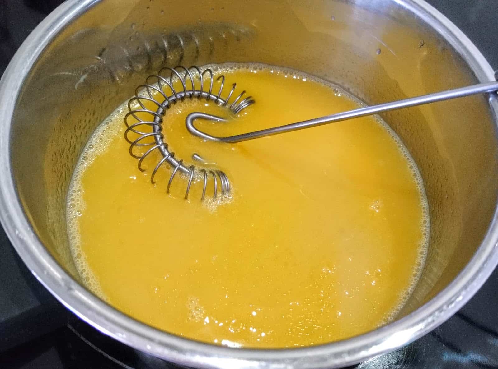 5. Place all the ingredients for the toffee sauce in a pan. Once the butter melts stir it with a whisk, combining them well together.