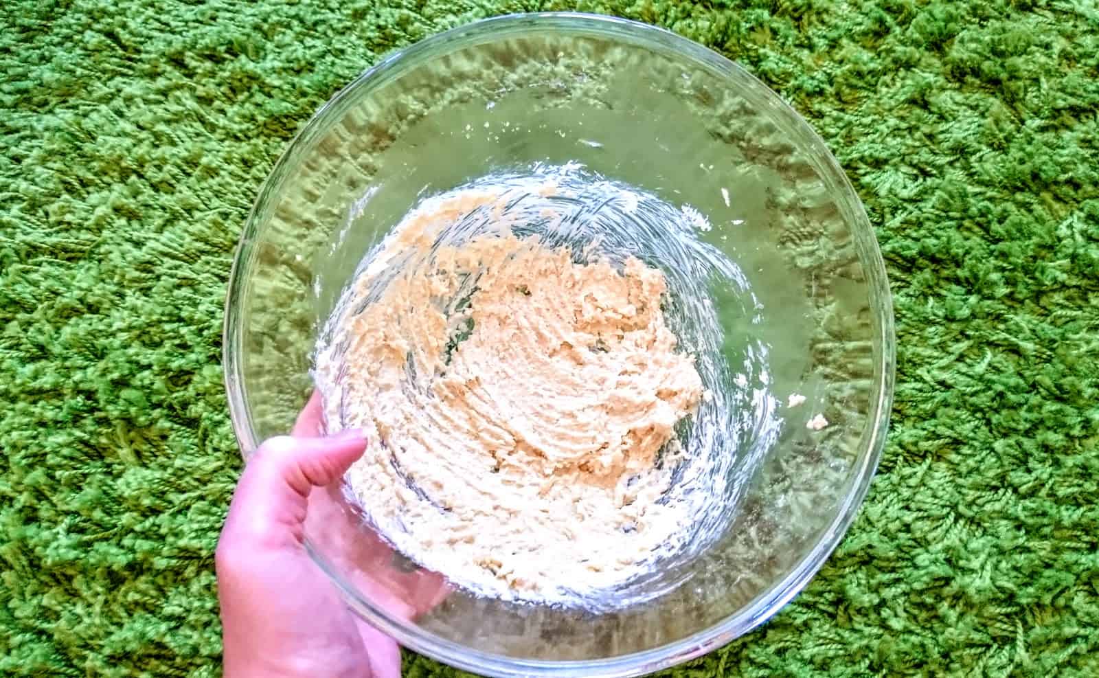 3. In a bowl beat margarine and sugar until creamy, light and fluffy.